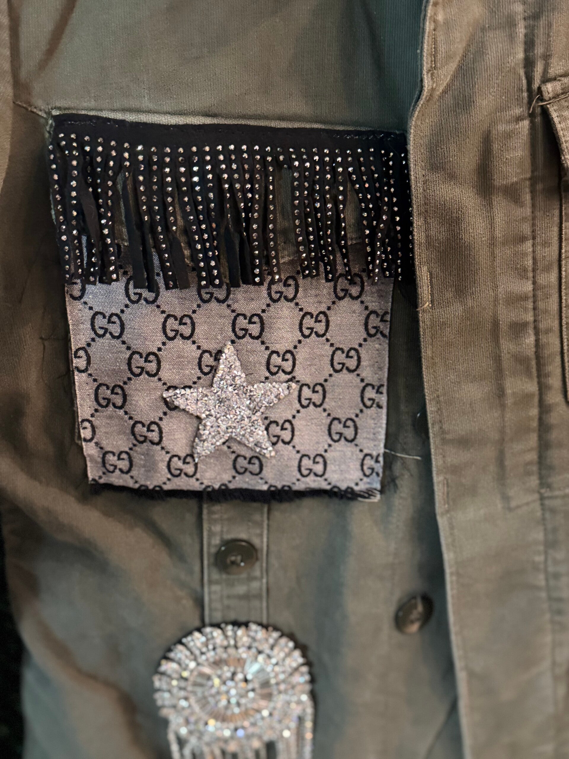 • Patch con frange e cristalli dal design couture